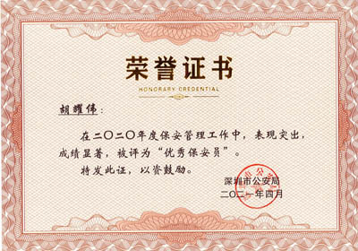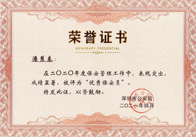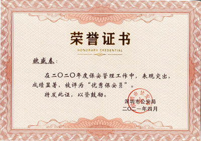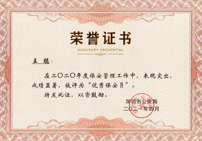 榮獲2017-2023年度深圳市公安局優(yōu)秀保安公司,深圳市保安協(xié)會(huì)常務(wù)理事單位(十大常務(wù)理事單位之一)