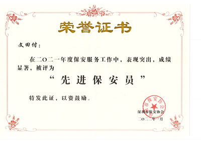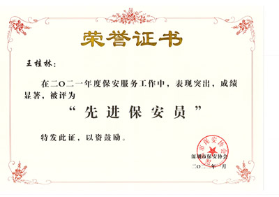榮獲2017-2023年度深圳市公安局優(yōu)秀保安公司,深圳市保安協(xié)會(huì)常務(wù)理事單位(十大常務(wù)理事單位之一)