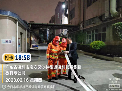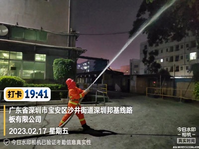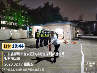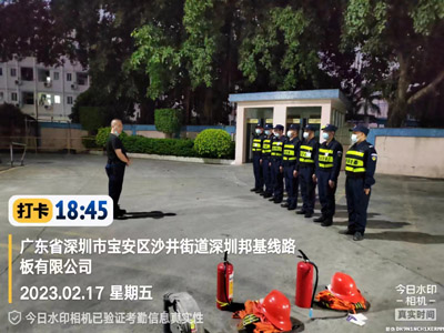 我司鐵保宏泰深圳保安公司駐深圳市寶安區沙井街道深圳邦基線路板有限公司安保隊伍進行消防演習訓練活動。