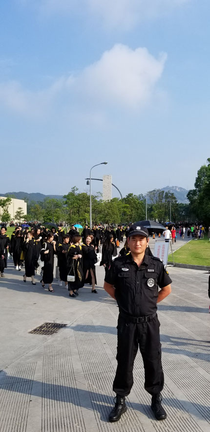我司鐵保宏泰保安公司出動數(shù)十名保安人員到汕頭大學(xué)為2018畢業(yè)典禮安保護(hù)衛(wèi)做貢獻(xiàn)。