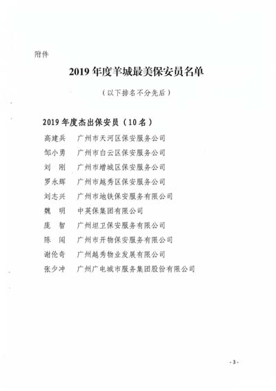 廣州市見義勇為基金會(huì)關(guān)于表彰2019年度羊城最美保安員的決定
